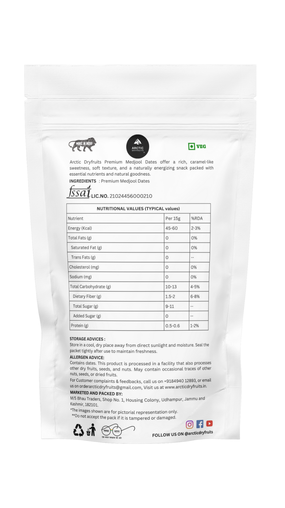 Experience the exquisite sweetness and soft texture of Arctic Dryfruits Medjool Premium Dates, often referred to as the "King of Dates." These naturally delicious treats are a perfect addition to any diet.
